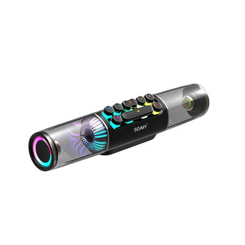Enhance the gaming experience with this Wireless Bluetooth Gaming Speaker. This Wireless Speaker comes with loads of features such as a steampunk mechanical keyboard, Dolby sound effects, Bluetooth 5.0, and eye-catching RGB light with Transparent plexiglass material, making it the most advanced speaker on the market.